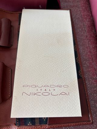 Elegante portadocumenti Piquadro della linea Nicolay. - Realizzato in pelle. - Colore marrone intenso. - Logo Piquadro inciso e logo Du Pont Pharma
