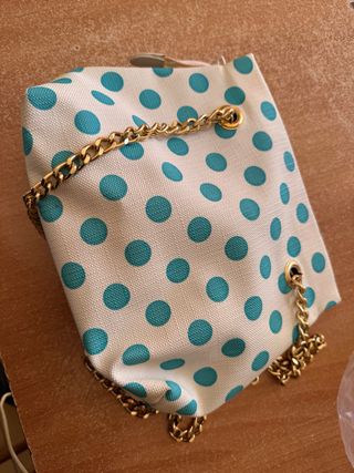 Borsa a pois celeste con catena dorata