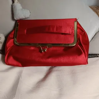 Elegante borsetta da sera a forma di bauletto, perfetta per completare un look raffinato. - Materiale satinato lucido. - Chiusura a scatto dorata con doppio pomello. - Manico superiore rigido.