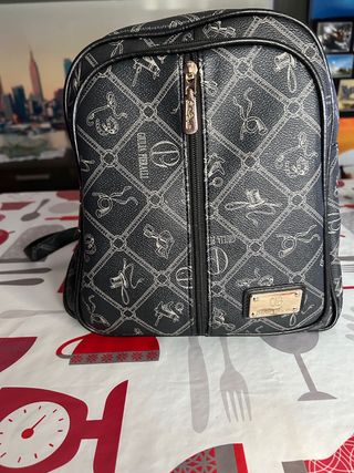 Zainetto in finta pelle con stampa geometrica e dettagli dorati. - Modello a zaino - Chiusura con zip - Dettagli con logo - Capiente