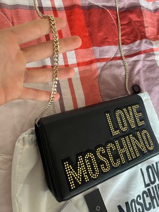 Elegante borsetta Love Moschinop originale perfetta per aggiungere un tocco di stile. - Dettagli con borchie dorate. - Tracolla a catena. - Include dustbag originale.