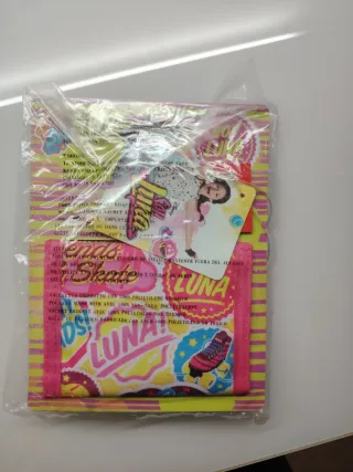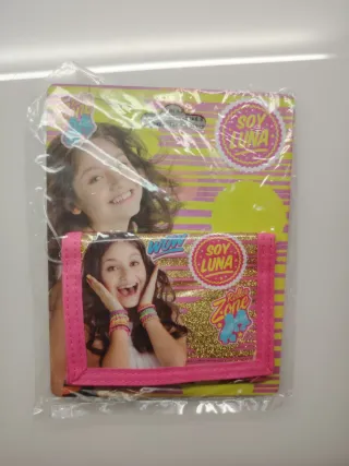 Portafoglio con immagine di Soy Luna, ideale per bambine. - Design con glitter dorati e dettagli rosa. - Immagine di Soy Luna con braccialetti colorati.