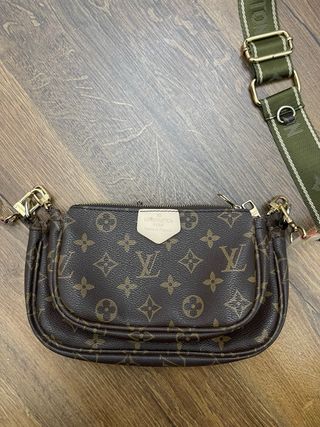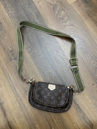 Borsa Louis Vuitton non originale modello Multi Pochette Accessoires. - Monogram canvas - Tracolla in tessuto verde con logo - Dettagli in pelle - Chiusura con zip