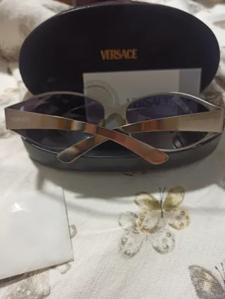 Occhiali da sole Versace con montatura color oro e lenti viola. - Montatura metallica color argento Titanium - Lenti sfumate viola.