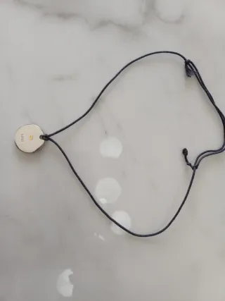Collana unisex con ciondolo a tema zodiacale (Sagittario ) - Cordicella regolabile nera. - Ciondolo rotondo in acciaio. - Dettagli in oro 18 k. - Simbolo zodiacale inciso.