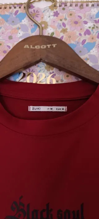 Maglia a maniche lunghe. - Colore rosso intenso. - Stampa Black soul sul petto. - Design crop top.