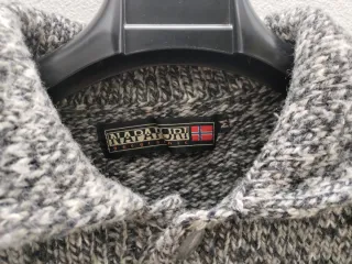 Maglione Napapijri da uomo in maglia grossa, con un motivo mélange che dona profondità al capo. - Scollo a V con revers. - Chiusura frontale con bottoni. - Taschino applicato sul petto.