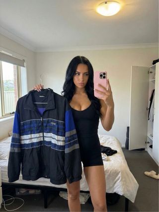 Giacca tecnica zip up Y2K Baggy Nera e Blu