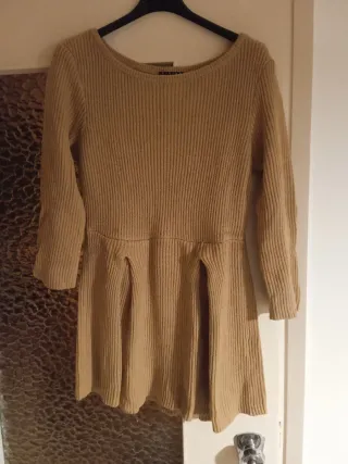 Elegante vestito in maglia con gonna a ruota, al ginocchio, rifinita con dettagli in lamé - Maniche lunghe. - spalle leggermente a sbuffo - Collo alto. - Tessuto morbido e confortevole. 34 cm vita 64 cm dalla vita