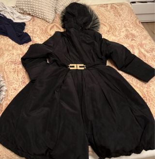 Parka Elisabetta Franchi. - Dettaglio con zip dorata. - Cappuccio con pelliccia. - Chiusura con bottoni a pressione.