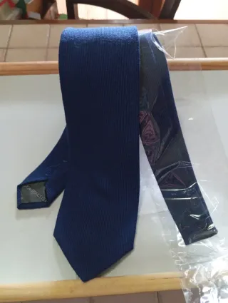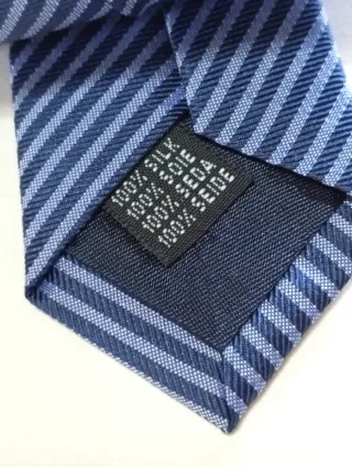 Elegante cravatta Patrizia Villa Milano, Seta 100%, fondo blu a righe sottili grigio.