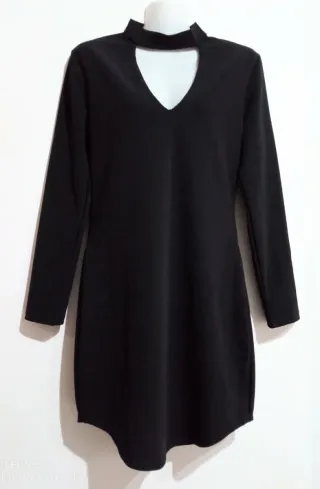 Abito nero SHK, taglia L (Allego foto con misure) in poliestere e spandex. Modello a maniche lunghe con scollatura moderna a choker e dettaglio cut‑out sul davanti, che valorizza la figura senza risultare eccessivo. Il tessuto è morbido, leggermente elasticizzato e molto confortevole. Vestibilità femminile e silhouette pulita, perfetta per chi ama uno stile minimal chic. Condizioni: ottime, usato pochissimo. Tessuto: poliestere + spandex #robenoire #vestidonegro #schwarzeskleid #blackdress