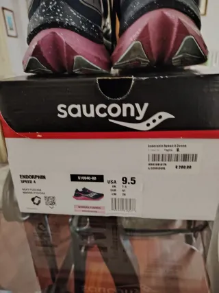 Scarpe da running Saucony Endorphine Speed 4 da donna. - Colore grigio e rosa. - Design moderno e performante. Scarpe con piastra ideali per allenamenti veloci e gare. Usate poco in perfette condizioni