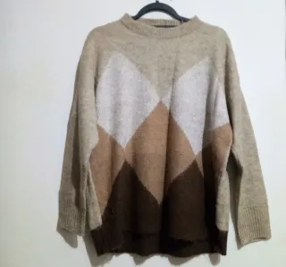 Maglione oversize morbidissimo firmato H2O Italia, realizzato in misto lana con una lavorazione morbida e confortevole. Presenta un elegante motivo a rombi geometrici sul davanti, nei toni del beige, bianco e marrone, che dona un tocco ricercato e facile da abbinare. ✨ Dettagli - Taglia S (Allego foto con misure) - Composizione: 57% acrilico, 29% poliammide, 7% lana, 7% viscosa - Colore principale: beige chiaro - Motivo frontale a rombi in gradazione di colori - Collo, polsini e fondo a costine Ottime condizioni #pullfemme #jerseymujer #damenpullover