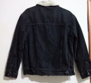 Giacca in denim nero Bershka, modello corto con collo in sherpa bianco super morbido e caldo. Look casual e grintoso grazie all'orlo leggermente sfrangiato e ai bottoni metallici frontali. Dettagli - Taglia XS (EUR/USA), MEX 24 (Allego foto con misure) - Collo e interno parzialmente foderati in sherpa - Due tasche sul petto con bottone + due tasche laterali - Regolatori laterali in metallo sul retro - Vestibilità comoda - Indossata poco Come nuova #giaccadenim #vesteenjean #chaquetademezclilla #jeansjacke