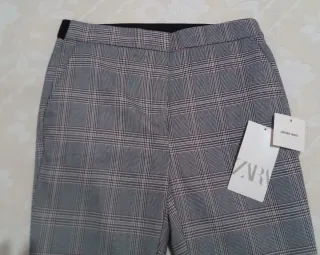 Eleganti pantaloni da donna firmati ZARA, modello a quadri grigi con taglio dritto e vestibilità slim. Tessuto morbido e strutturato, perfetto per look da ufficio o outfit casual chic. Vita media, chiusura frontale invisibile, tasche laterali. Fantasia check tono su tono, raffinata e senza tempo. -Taglia: S Allego foto con misure -Condizioni: Nuovo con cartellino -Colore: Grigio con motivo a quadri -Materiale: poliestere #pantalonizara #pantalongriszara #pantalonnuevo #hosezara