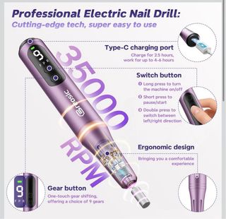 Fresa per unghie elettrica professionale, ideale per manicure e pedicure. Portatile e facile da usare. - 35000 Giri - Cordless - Design professionale - Accessori inclusi. Nuova mai usata ancora nello scatolo
