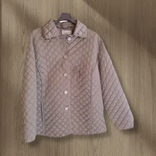 Giacca trapuntata perfetta per la mezza stagione. Presenta un design classico con chiusura a bottoni. Colore grigio/cachi Taglia 56it - Collo a camicia. - Maniche lunghe. - Tasche laterali. - Fodera trapuntata. Indossata poco, ottime condizioni