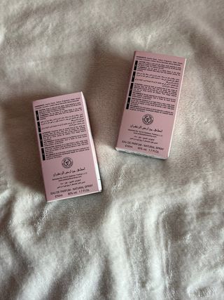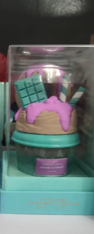 - Un profumo con aroma di rosa. - Un altro profumo con design di cupcake verde.