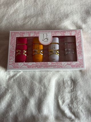 Collezione di 4 mini profumi Yara di Lattafa. Include quattro fragranze diverse. Confezione in scatola decorata.