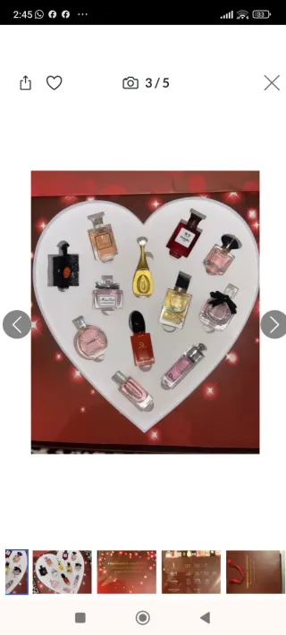 Set di miniature di profumi presentate in un design a forma di cuore. Varietà di fragranze. Ideale per collezionare o regalare.