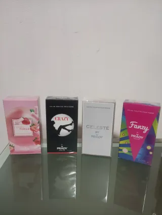 Confezione da 12 profumi della marca PRADY per donna. - YANI (Arancia) - HITA ICE CREMA (Celeste) - YANI SWEET (Rosa) - PINK BUTTERFLY (Rosa con farfalla) - YUMMY MARSHMALLOW (Rosa) - CHIC BAG (Rosa con borsa) - Vanilla Toscana (Blu) - CLARA (Giallo con dessert)