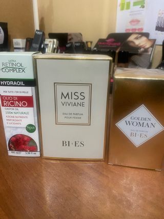 Set composto da due eau de parfum BI ES. - Miss Viviane Eau de Parfum Pour Femme. - Golden Woman Eau de Parfum. -olio di ricino