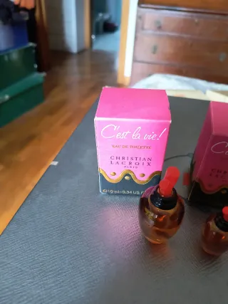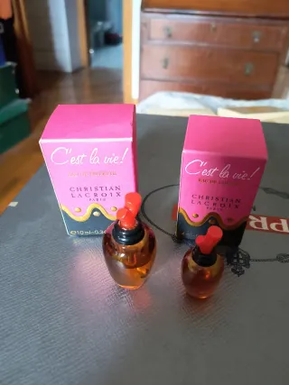 Due mini profumi Christian Lacroix C'est la vie!. Sono leggermente evaporare ma mai usate per collezionisti - Una fragranza floreale e fruttata. - Eau de Toilette da 10 ml. - Eau de Parfum da 4 ml.