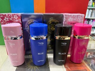 Set di 4 profumi da uomo e donna. - Fragranze Pink, Blue, Black e Candy. - Marchio Tom & Darin.