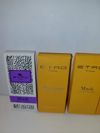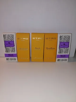 Set di 5 miniature di profumi Etro. - 2x Musk Eau de Toilette - 2x Musk Eau de Parfum - 1x Man Rose Eau de Parfum