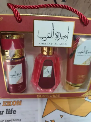 Elegante set di profumi Ameerat Al Arab. - Eau de Parfum da 50 ml. - Fragrance Lotion da 88 ml. - Profumo da 88 ml.