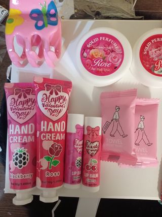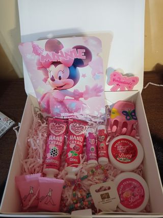 Set bellezza regalo perfetto per un'occasione speciale. - Include 2 creme mani al gusto blackberry e rose - Include balsamo labbra blackberry e cherry - Due profumi solidi peony e rose - Collana colorata in acciaio - Fermaglio per capelli - maschera viso Minnie Tutto nuovo e sigillato completo di scatola regalo. Affareeee....🧨