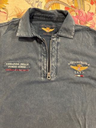 Polo a maniche corte L Aviazione Navale, colore blu, taglia L ). Dettagli: - Zip frontale. - Patch ricamate. - Tessuto leggermente stone washed.