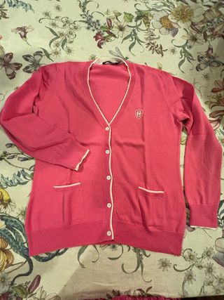 Bellissimo cardigan rosa della marca Conte of Florence, taglia L. - Cotone di alta qualità. - Dettagli con finiture bianche. - Perfetto per la primavera e l'autunno.