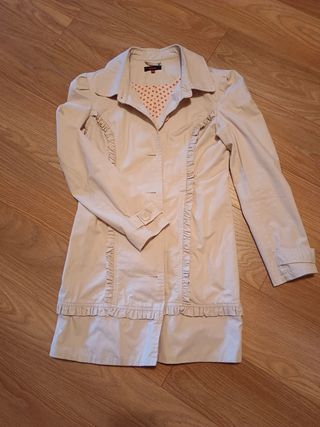 Bellissimo impermeabile color beige, taglia M (38/10). - Dettagli con volant. - Chiusura con bottoni. - Fodera interna a pois.