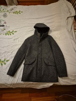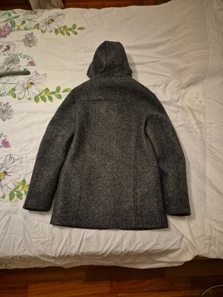 Elegante cappotto da uomo con cappuccio, interamente creato e prodotto in Italia. - Tessuto esterno mélange grigio. - Tessuto interno blu scuro. - Chiusura con bottoni più cerniera a doppio scorrimento. - Due tasche frontali applicate. - Un taschino interno.