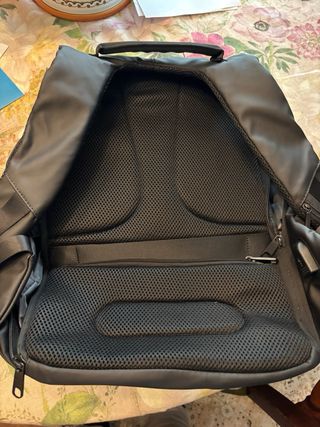 Zaino FVG con diversi scomparti e accessori. Design moderno e funzionale. - Materiale esterno in similpelle nera. - Dettagli in tessuto grigio. - Logo FVG stampato.