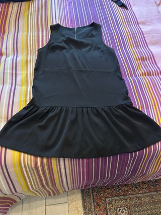 Elegante abito nero Pimkie, perfetto per ogni occasione. La sua linea fluida lo rende comodo e versatile. - Tessuto leggero e morbido al tatto. - Design senza maniche. - Gonna a balze. - Chiusura posteriore con zip.