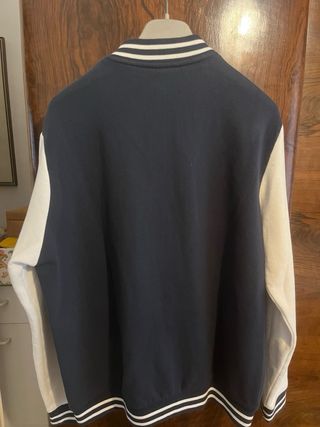 Giacca stile college con maniche a contrasto. - Chiusura con bottoni automatici - Collo e polsini a costine. - Tasche laterali. - Logo Scout.