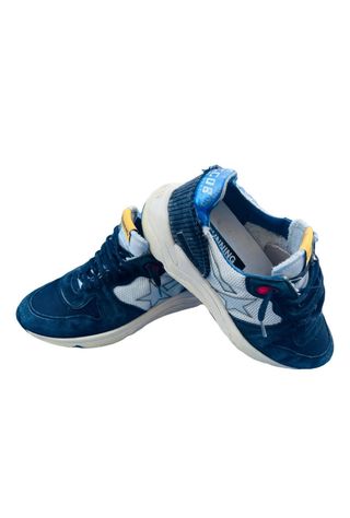 Scarpe Golden Goose modello Running originali. - Tomaia in camoscio blu e tessuto bianco. - Dettagli a contrasto. - Suola in gomma.