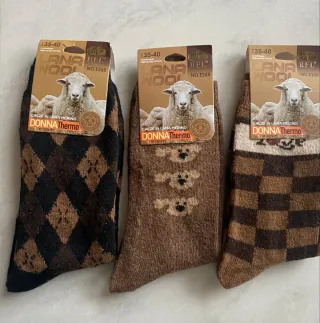 Calze in lana merino Donna Thermo, taglia 35-40. Perfette per mantenere i piedi caldi. (cod AAA) M - Design a rombi nero e marrone. - Modello con orsetti marroni. - Fantasia a scacchi marrone e beige.