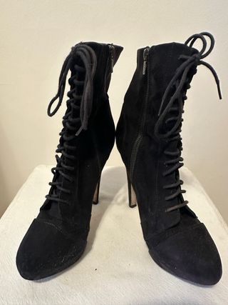 Eleganti stivaletti con tacco a spillo. - Materiale scamosciato. - Chiusura con lacci. - Zip laterale.