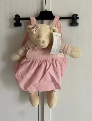 Zainetto rosa per bambina, Baby Bears, marca Easy Home, nuovo con cartellino, tessuto in velluto 100% cotone, imbottitura 100% poliestere, bretelle regolabili, piccolo taschino laterale per contenere piccoli oggetti con chiusura a zip, lunghezza cm 48, lunghezza cm 41 ( E1 scat bambole) w. M