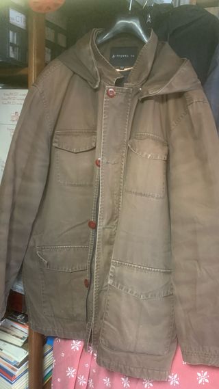 Giacca da uomo in cotone di colore marrone. - Taglia 52 - Chiusura con bottoni - Cappuccio - Tasche frontali