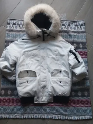 Parka Canada Goose di colore bianco, con cappuccio bordato in pelliccia. Presenta tasche frontali con patta e chiusura a bottone. - Dettagli con zip sulle maniche. - Polsini e fondo a costine. - accetto offerte convenienti - con tutte due le pellicie - per altre foto o info in dm - spedizione in 24/48h
