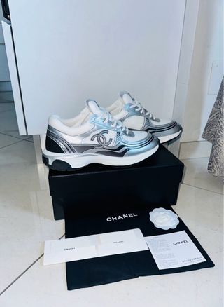Sneakers Chanel modello Runner. In ottime condizioni usate 4/5 volte - Design moderno con dettagli argento e bianchi. - Logo Chanel iconico presente sulla scarpa.