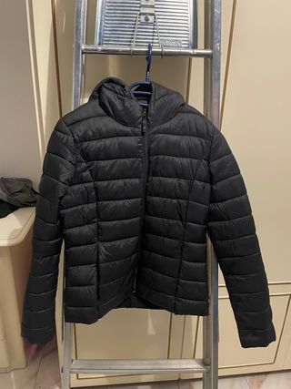Piumino nero con cappuccio, perfetto per le giornate più fredde. - Imbottitura sintetica. - Zip frontale. - Tasche laterali.