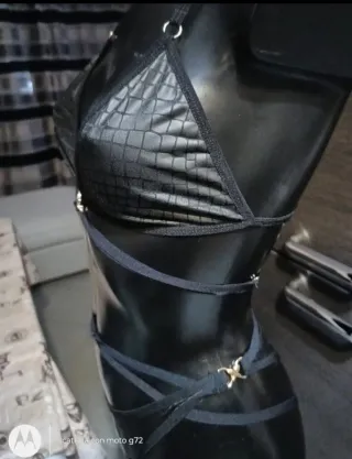 Completo intimo nuovo, elegante e sensuale. - Tessuto con texture effetto pelle di serpente. - Dettagli con anelli dorati. - Spalline regolabili.