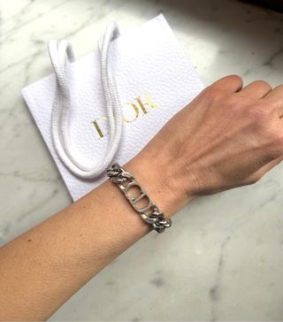 Elegante bracciale in acciaio con logo CD. - Materiale: Acciaio - Colore: Argento - Design: Catena con logo CD