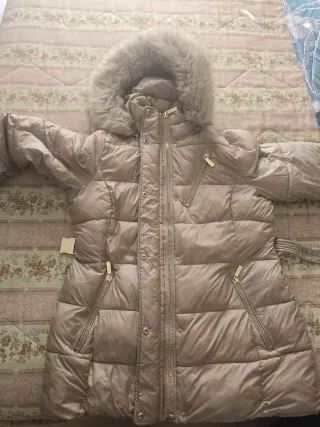Vendo giubbotto invernale imbottito di Michael Kors, usato pochissimo, non presenta difetti. Dettagli visionabili in foto: polsini elasticizzati, cintura con fibbia dorata con logo, doppia chiusura frontale con zip e bottoni, cappuccio con finto piumino, tasche laterali con zip. Lavabile in lavatrice. Colore beige, taglia L (veste grande, circa una 50)